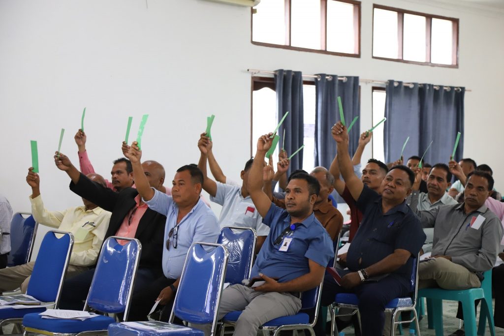 Votasaun globál ba kapa, vizaun, misaun 5, pilár dezenvolvimentu 4 ho sub pilár 27, objetivu estratéjiku 32, estratejia 238 inklui programa asaun 250 ba Planu Dezenvolvimentu Munisipál tinan 5, pasa ho votu unanimidade ho vota afavór husi membru Konsellu Koordenasaun Munisipál 36.