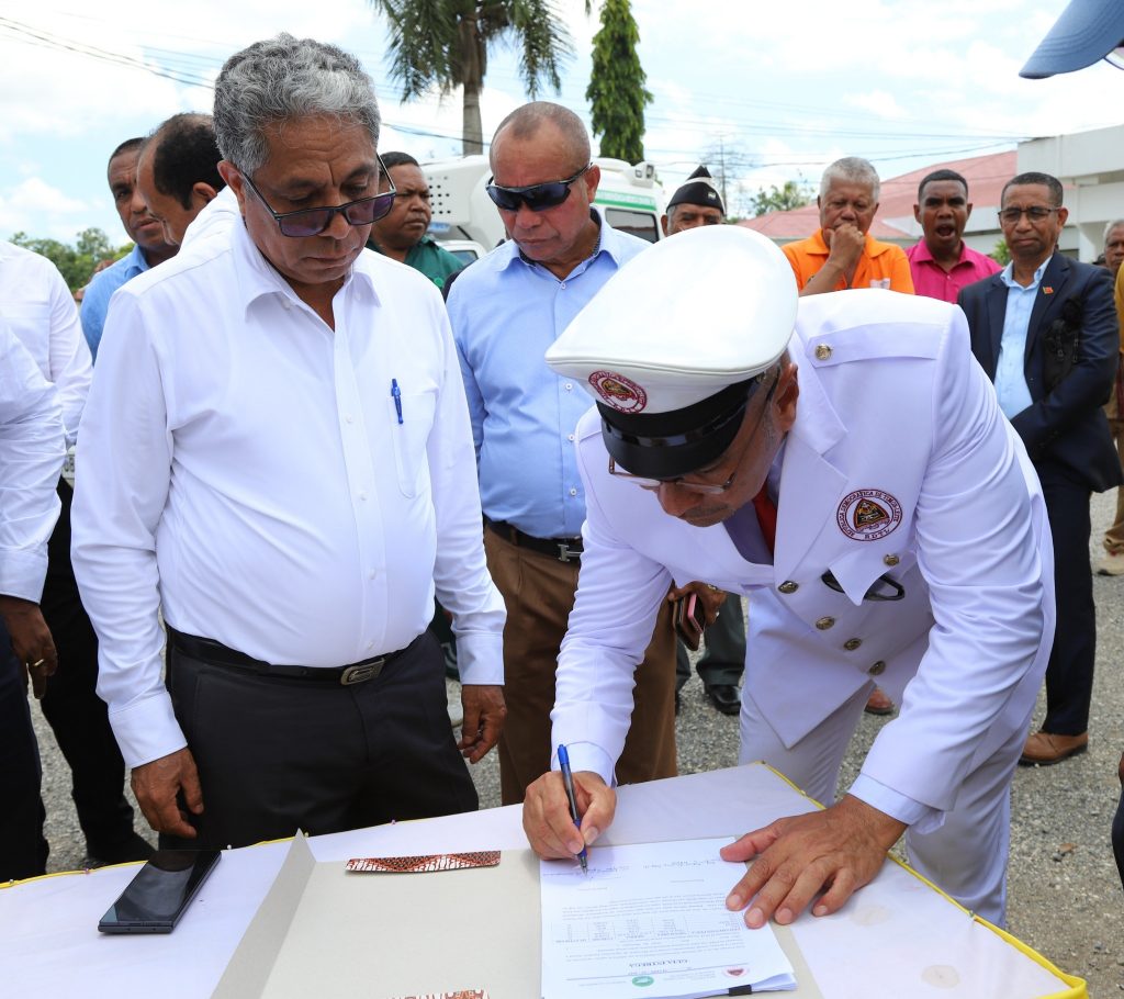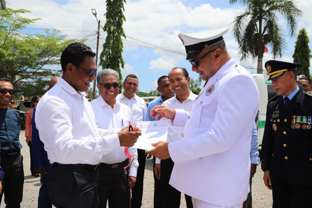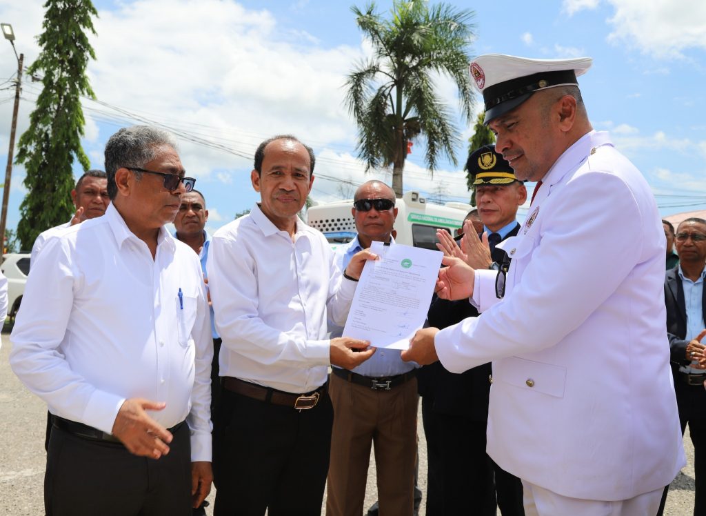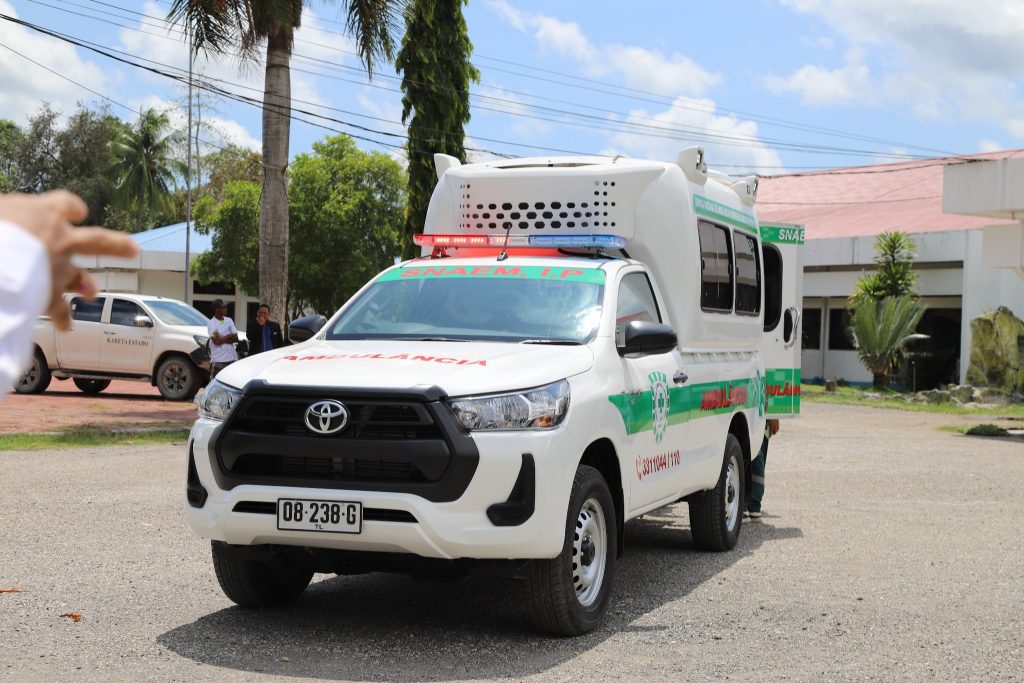 Aleinde ekipamentu Agrikultura no Peskas nian, Exelentísimu Prezidente Autoridade simu mós transporte ambulánsia ne’ebé apoiu husi Ministériu Saúde hodi ajuda servisu munisipál Saúde hodi tula pasiente sira.