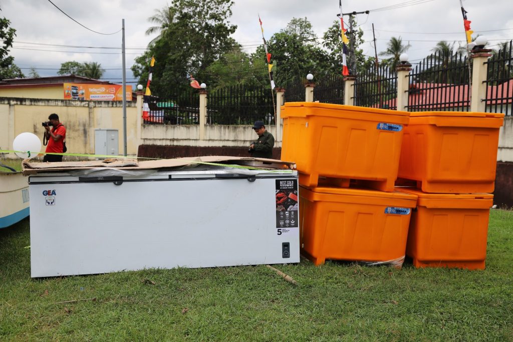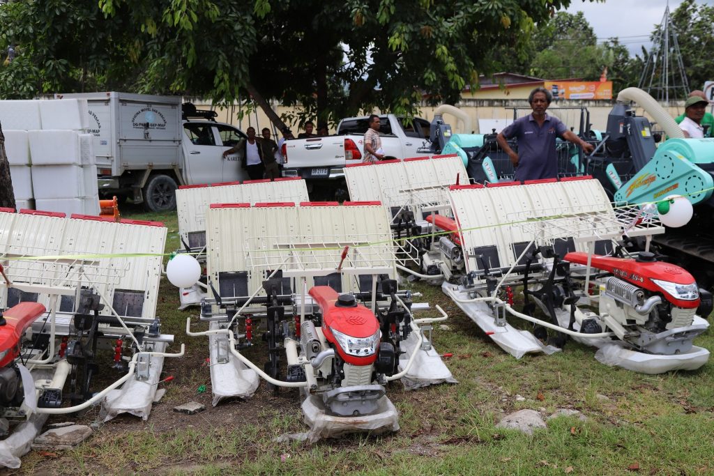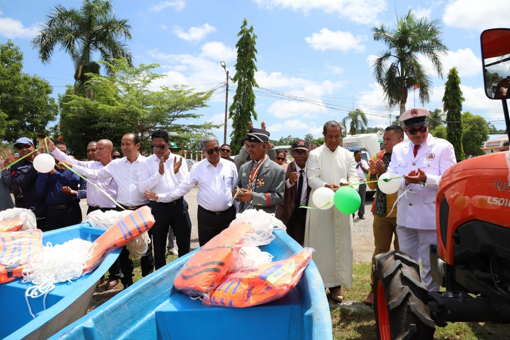 Ekipamentu ne’ebé distribui maka hanesan, makina Traktor kubota mediu unidade 3, makina kuda hare unidade 10, makina koa hare unidade 5, rak/bandeza viverus fatin. Inklui ekipamentu peskas hanesan, Bero ne’ebé sei entrega direta ba grupu sira ne’ebé hato’o pedidu ba MAPPF, Jeleira, Cool box, jaket, tali no ankora.