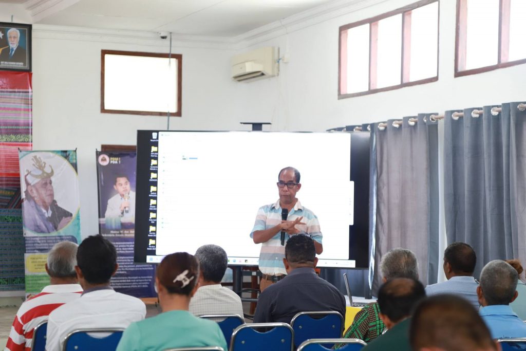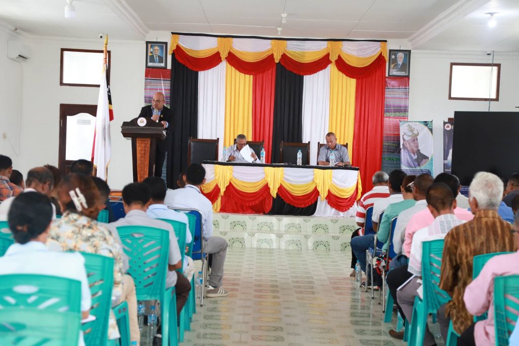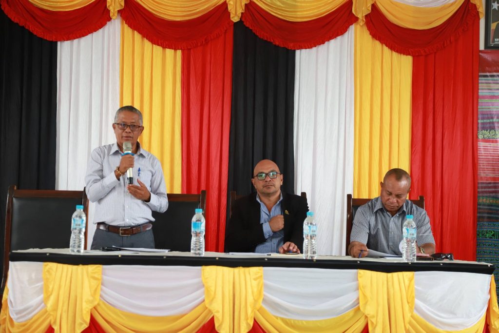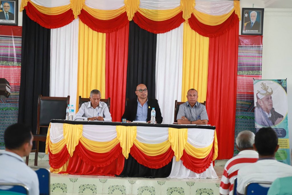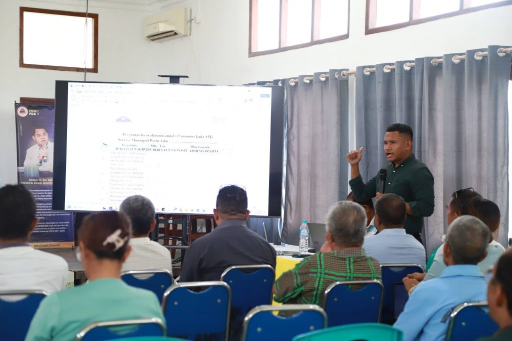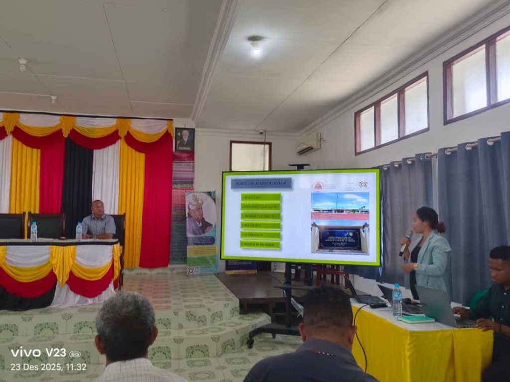 Viqueque, 23 Dezembru 2025, Sua Exelénsia Prezidente Autoridade Munisipál, Sr. Francisco C.S de Gonzaga Soares, ofisiálmente halo abertura sorumutu avaliasaun ba progresu servisu tinan 2025 husi diresaun servisu munisipál no postu administrativu 5, iha salaun Laline-AMV.