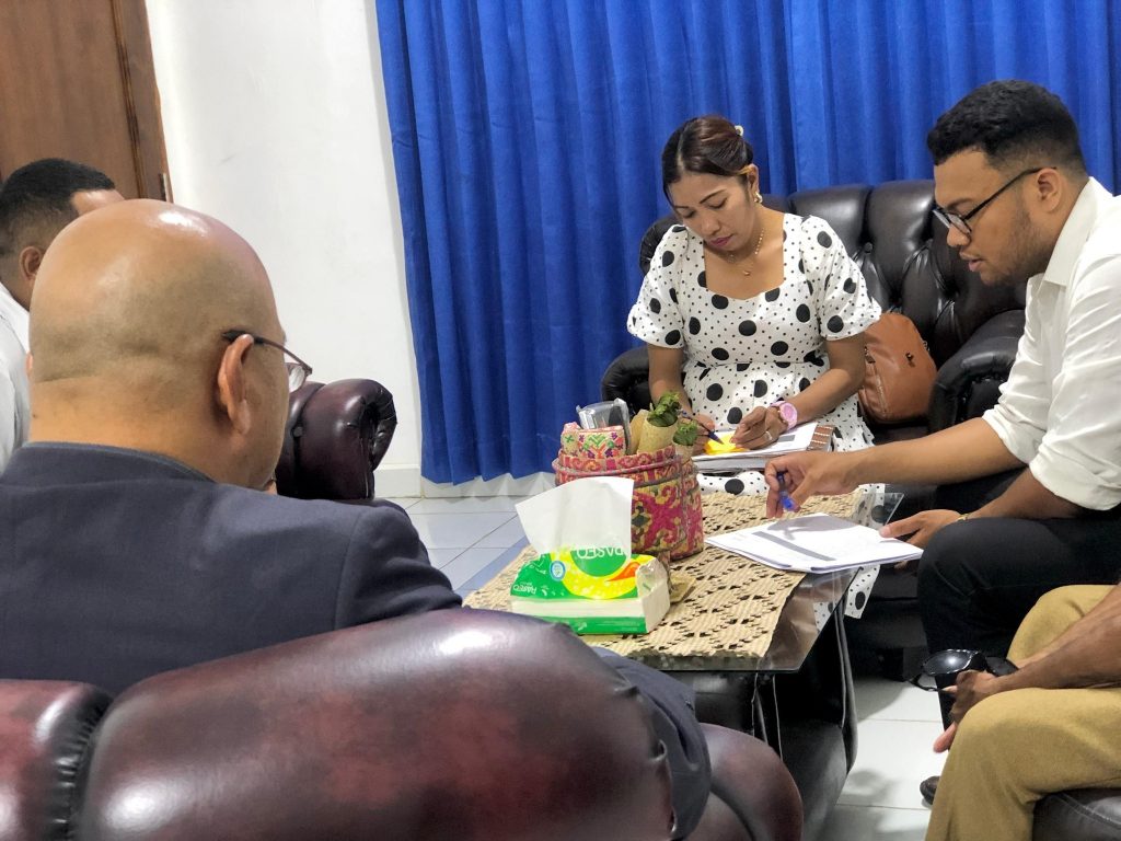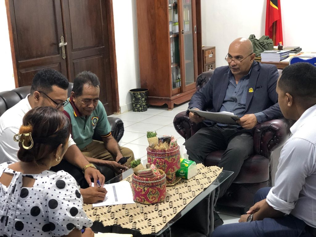 Sua Exelénsia Prezidente Autoridade Munisípiu Sr. Francisco C.S de Gonzaga Soares, simu audiénsia husi ekipa Diresaun Nasionál Monitorizasaun no Avaliasaun Administrasaun Lokál, Ministériu Administrasaun Estatál (MAE), lidera husi Xefe Departamentu Avaliasaun Sr. Boaventura Nessi.