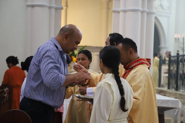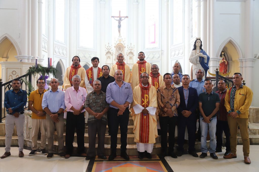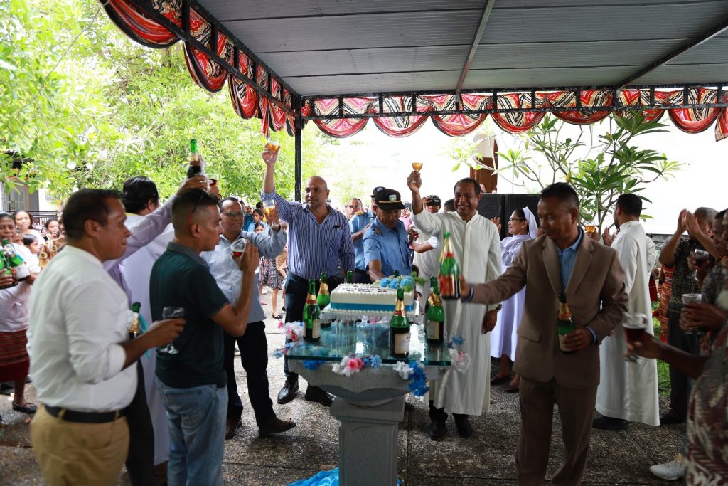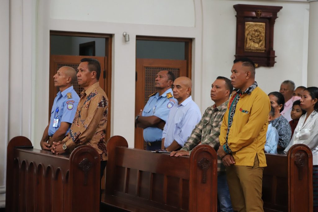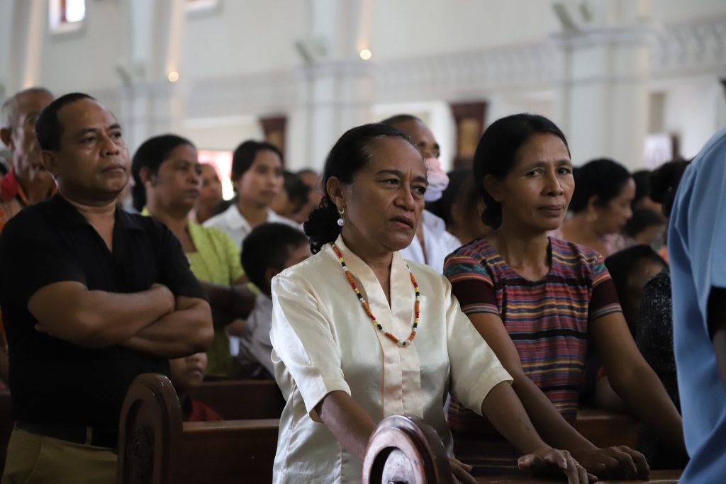 Sua Exelénsia Prezidente Autoridade Munisípiu Viqueque, Sr. Francisco C.S de Gonzaga Soares, hamutuk Autoridade Munisipál, Postu no Lideransa Komunitária sira partisipa iha selebrasaun misa aniversariu ezisténsia Parokia Nossa Senhora Imaculada da Conceicão ba dala 38, iha Igreja Parókia Imaculada da Conceição, Viqueque Villa.