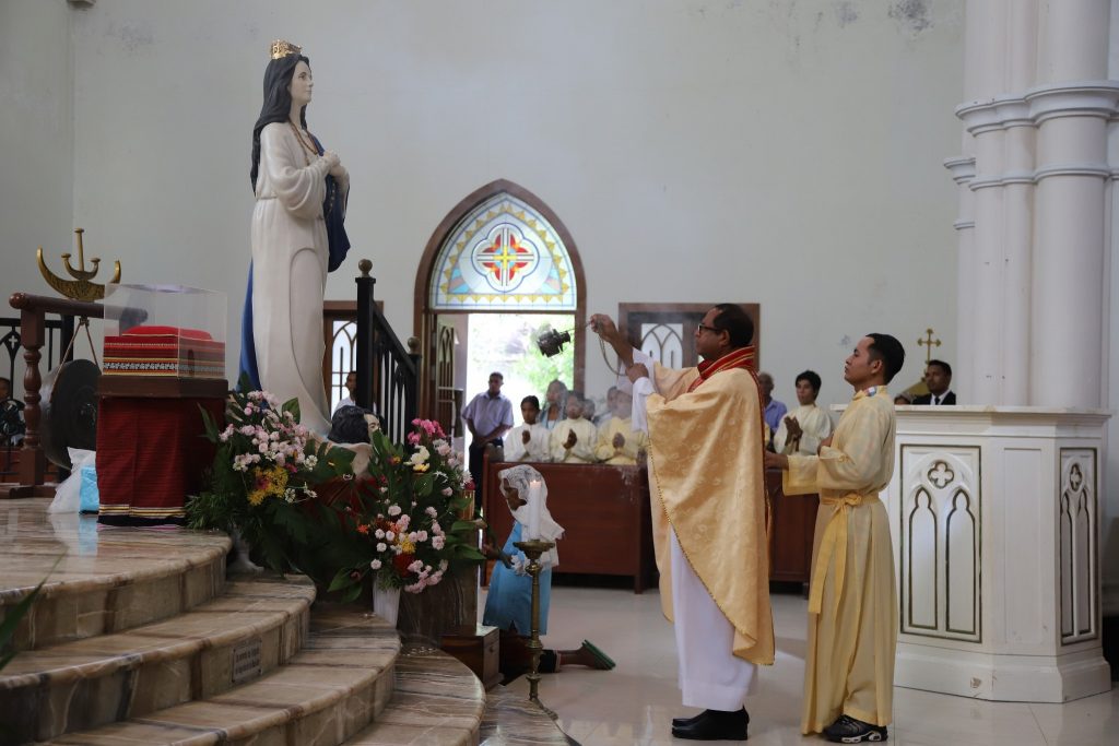 Misa refere, prezidi husi Reverendu Padre Paróku Pe. Tomás de Aquino G.L da Cruz, hamutuk ho Pe. Vigariu no Amu Lulik Viqueque oan sira iha selebrasaun loron Padroeira Parokia nian.