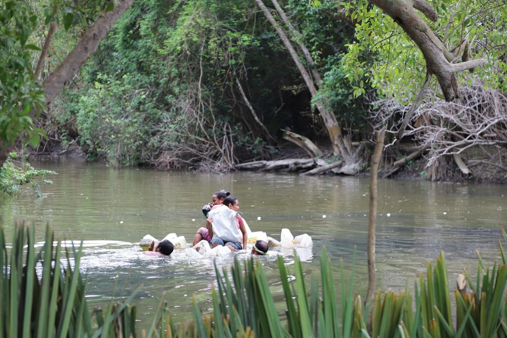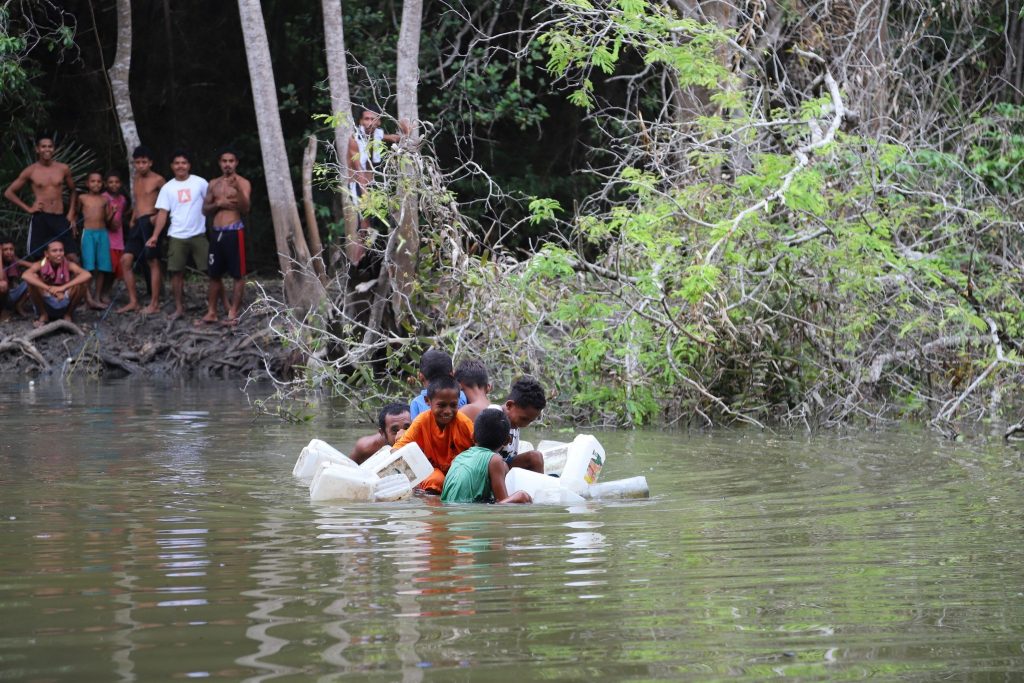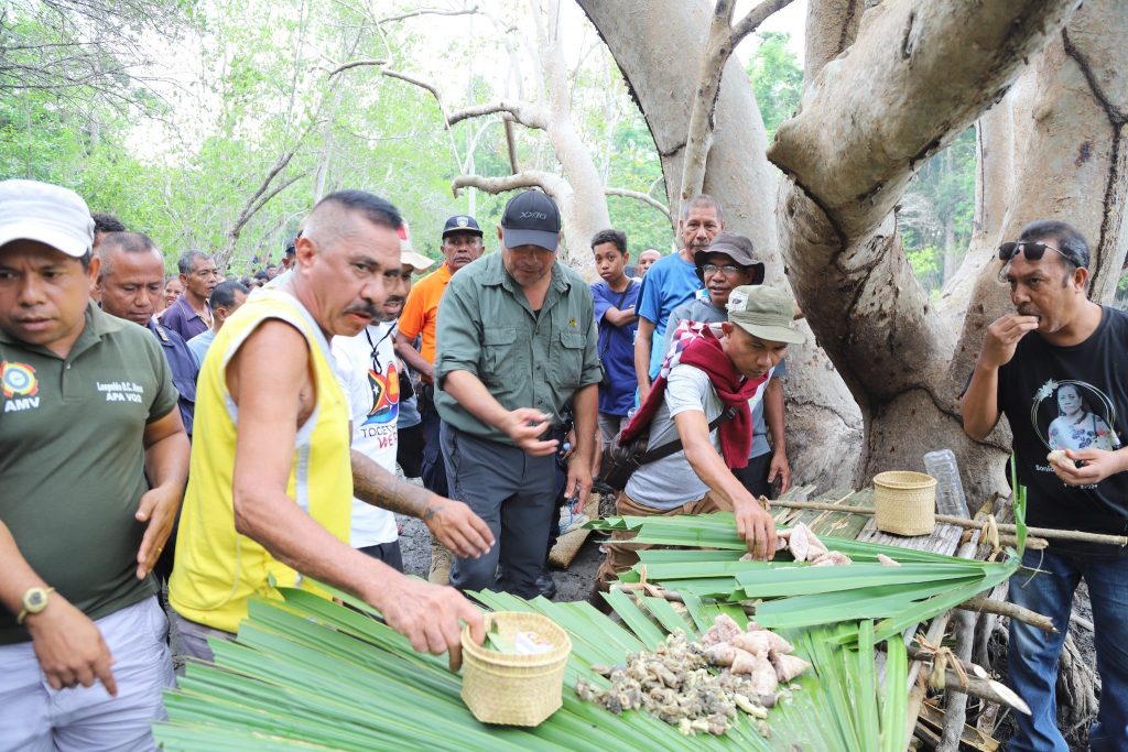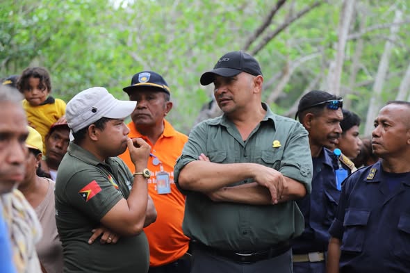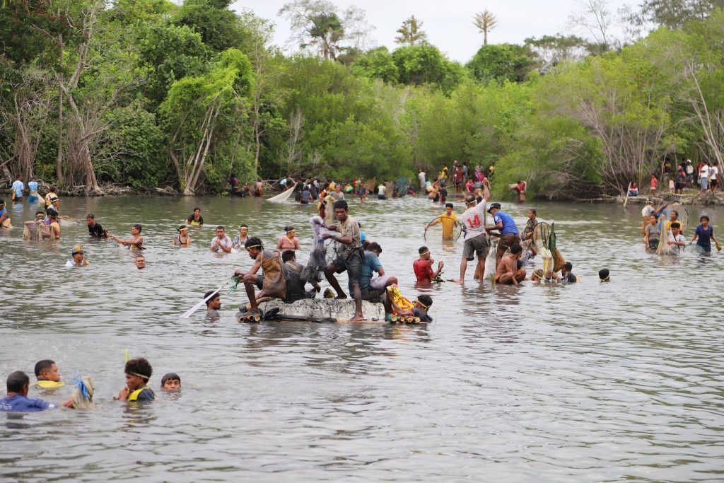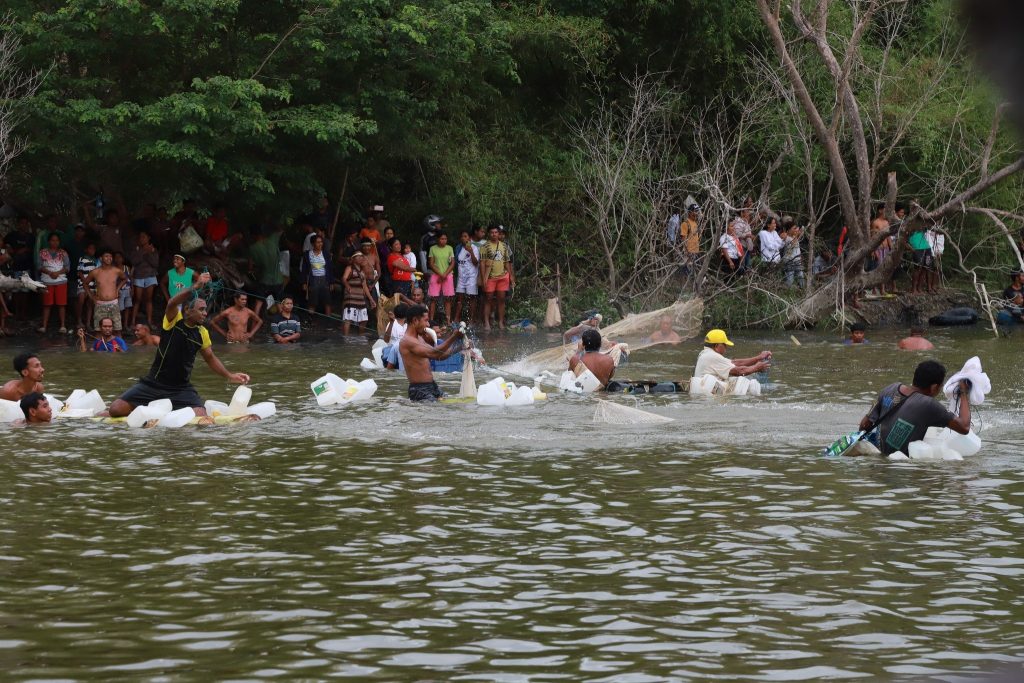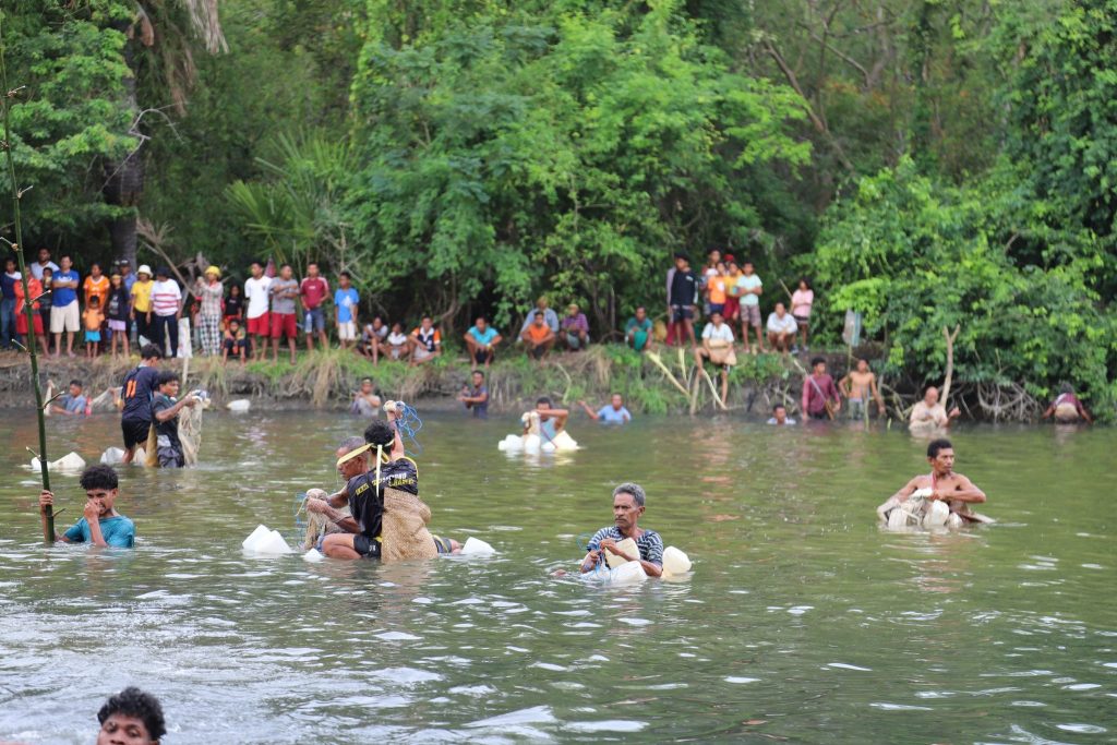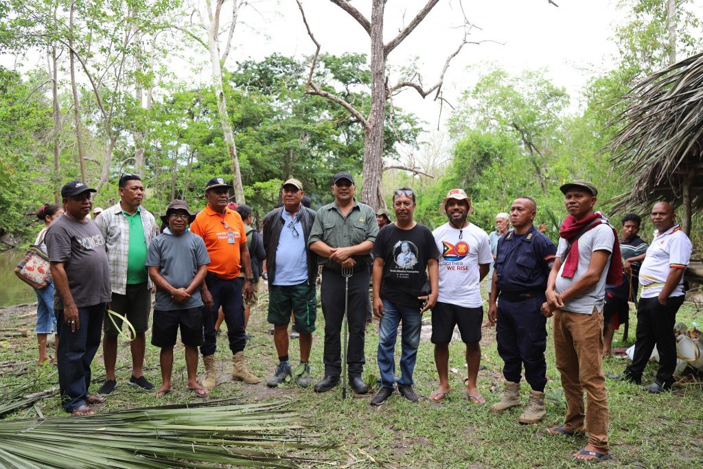Sua Exelénsia Prezidente Autoridade Munisípiu Viqueque, Sr. Francisco C.S de Gonzaga Soares, partisipa iha serimónia kolleta ikan iha lagoa We Ai Foun, ne’ebé administrativamente lokaliza iha suku Bahalarauain, Postu Administrativu Viqueque-Vila.