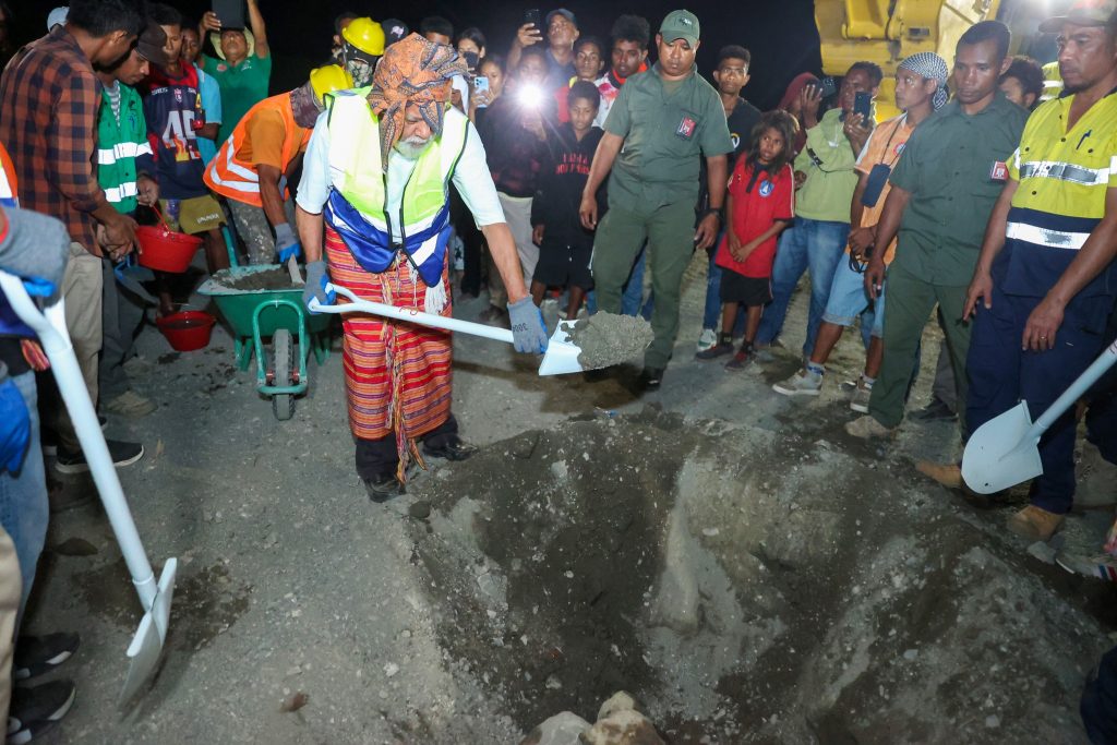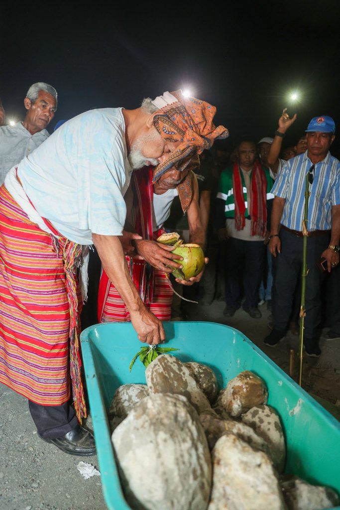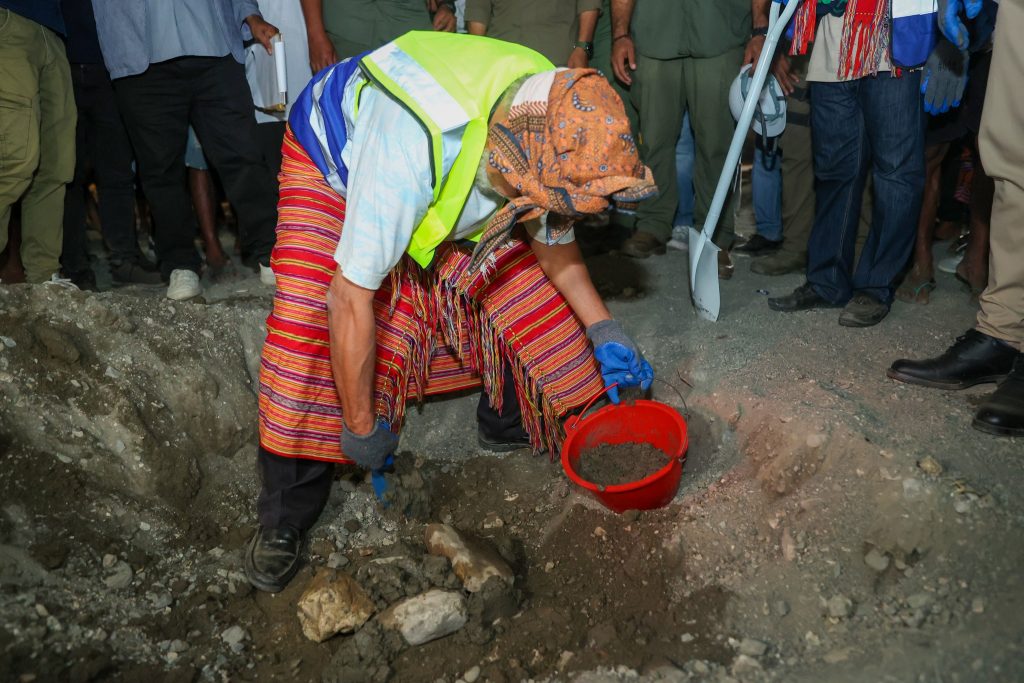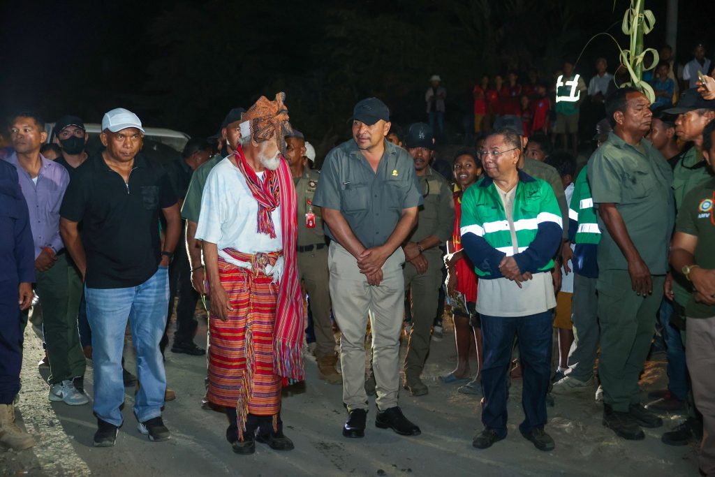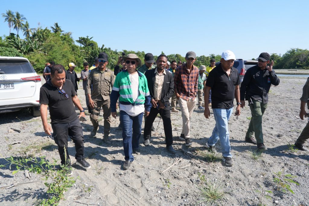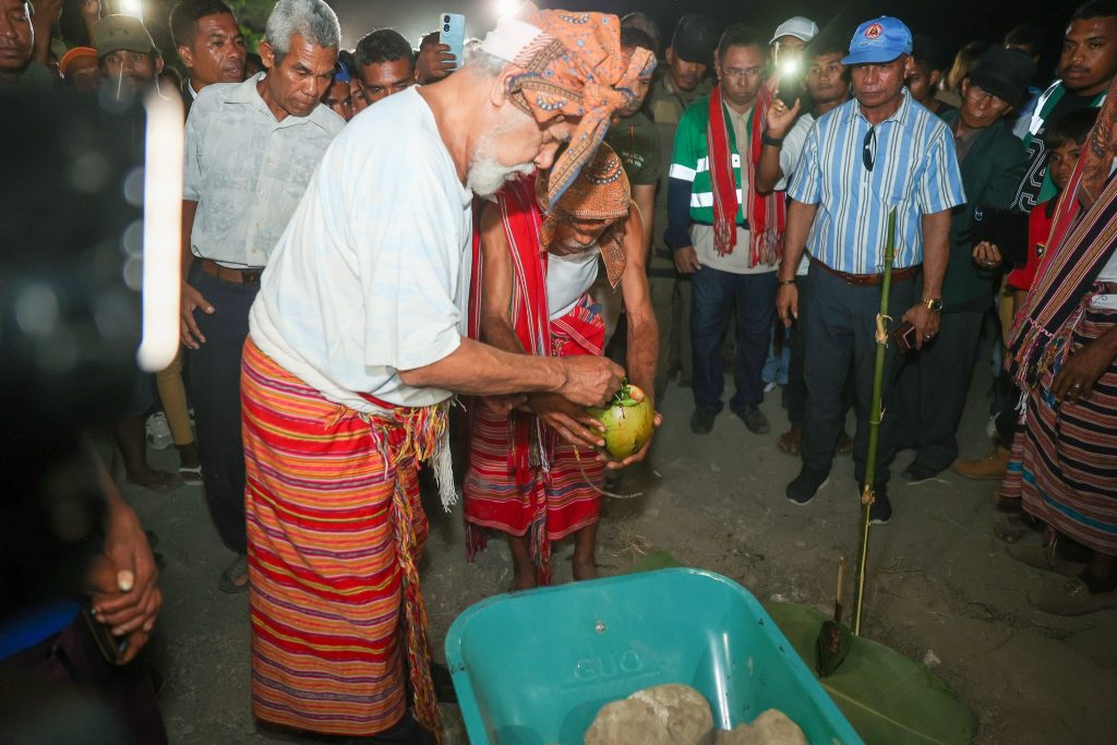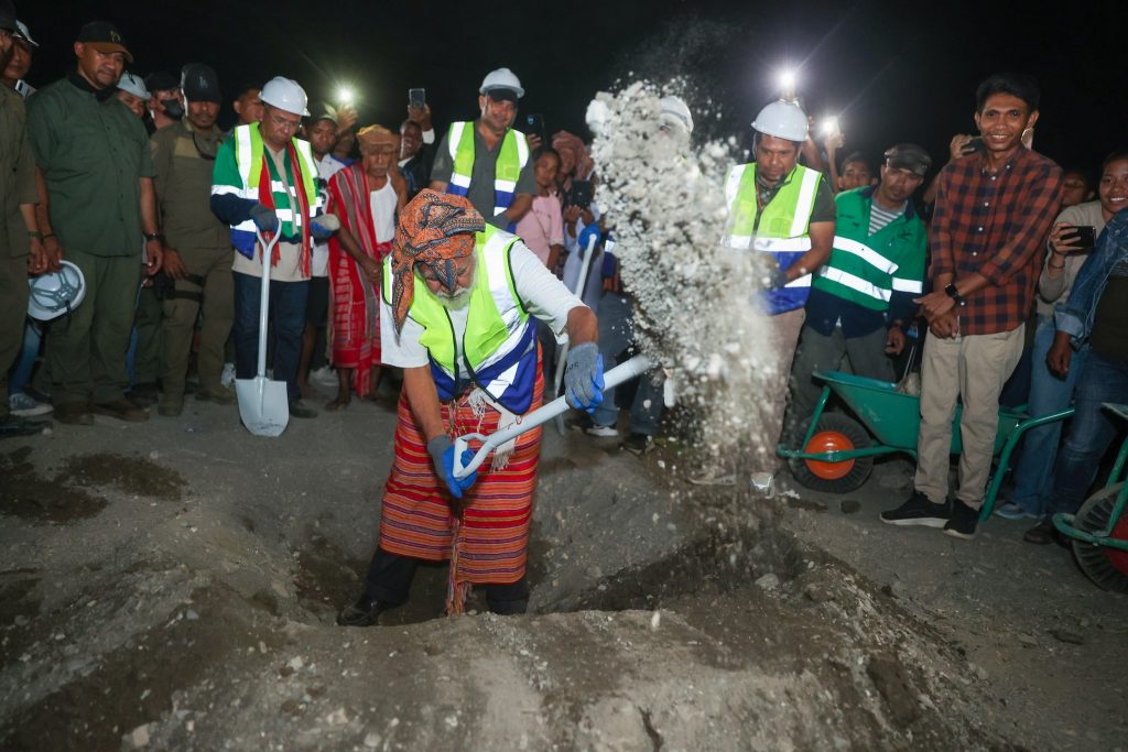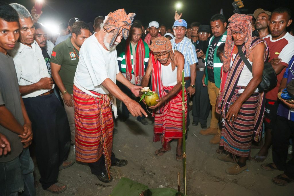 Primeiru-Ministru (PM), Kay Rala Xanana Gusmรฃo akompaรฑa hosi Ministru Obras Pรบblikas (MOP), Samuel Marรงal halaโ€™o lansamentu bรก projetu konstrusaun ponte mota We-Lolo, aldeia Uma Boot, suku Luca, postu administrativu Viqueque Vila, Munisรญpiu Viqueque, sรกbadu (04/10/2025).