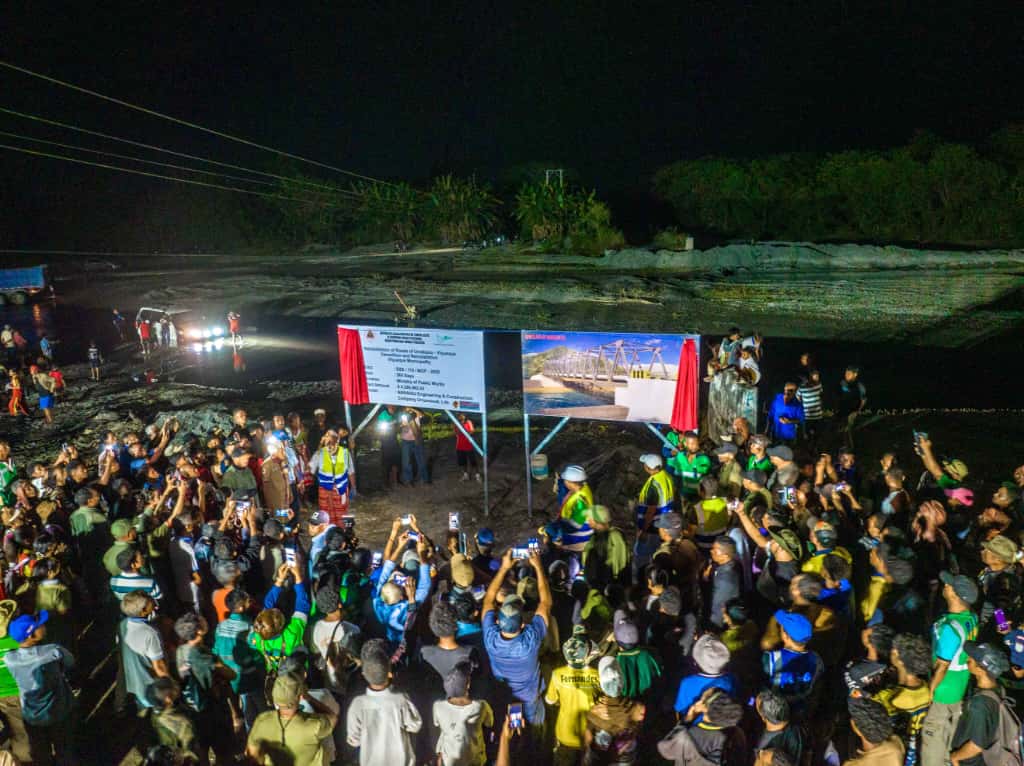 Exelentรญsimu Prezidente Autoridade Munisipรกl akompaรฑia Sua Exelรฉnsia Primeiru Ministru no Ministru Obras Pรบblikas halo lansamentu ba projetu konstrusaun ponte Welolo, lokaliza iha suku Luca, Postu Administrativu Viqueque