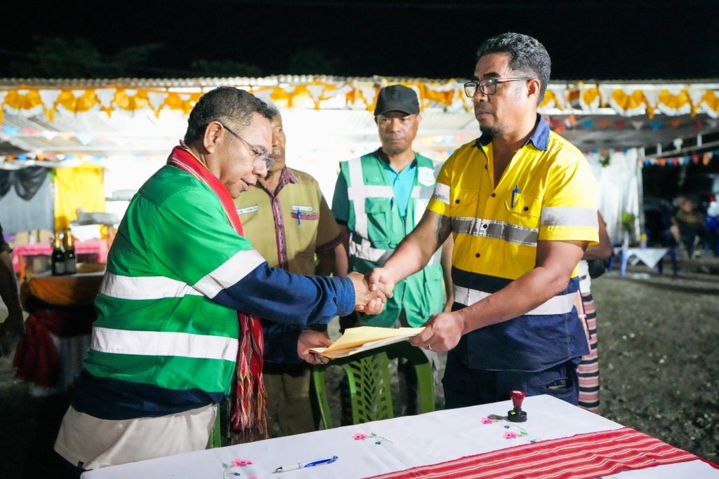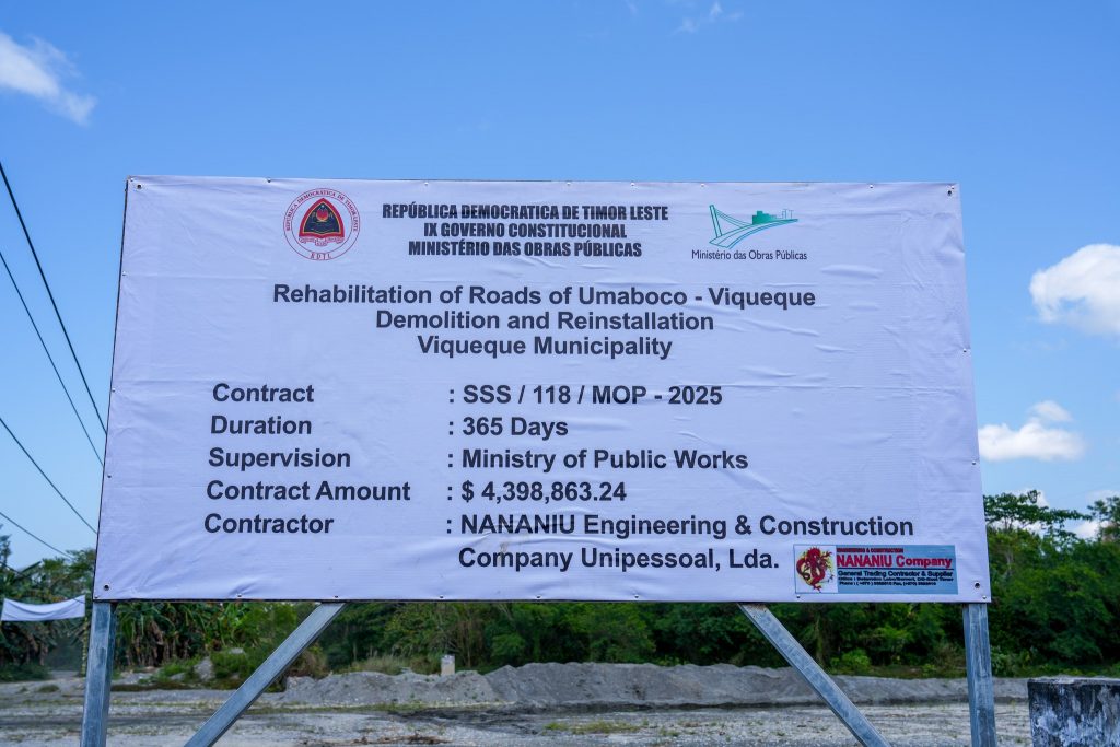 Nuneโ€™e, iha populasaun nia oin, ho sasin hosi Primeiru-Ministru Xanana Gusmรฃo nian, Ministru Obras Pรบblikas halaโ€™o serimรณnia asinatura bรก kontratu ho kompaรฑia Nananiu Unipessoal, Lda atu hatudu katak, prosesu hotu-hotu transparente no husu atu halo ho kualidade no tenke hotu tuir tempu neโ€™ebรฉ Governu fรณ.