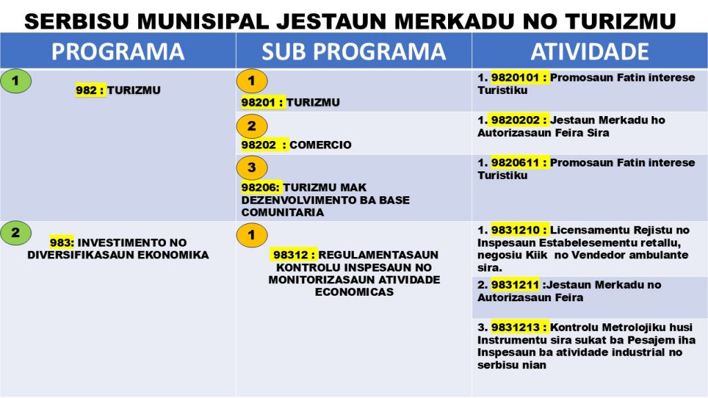 PROGRAMA SERVISU MUNISIPAL JESTAUN MERKADU NO TURIZMU 2025