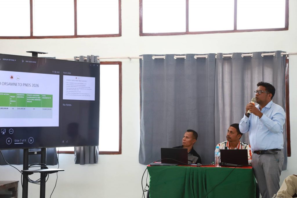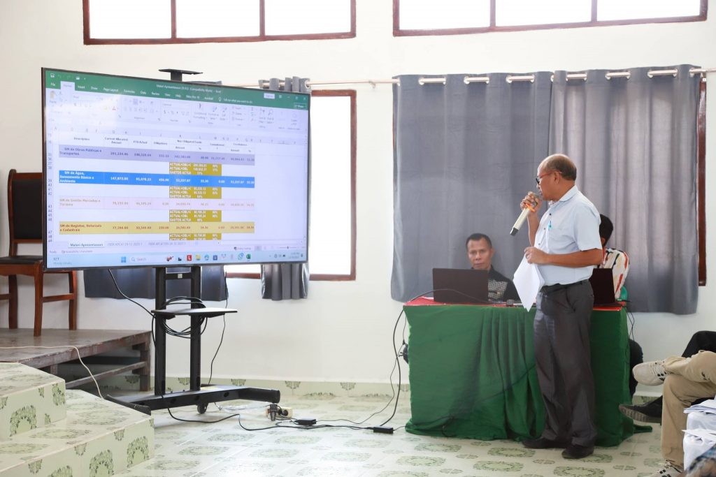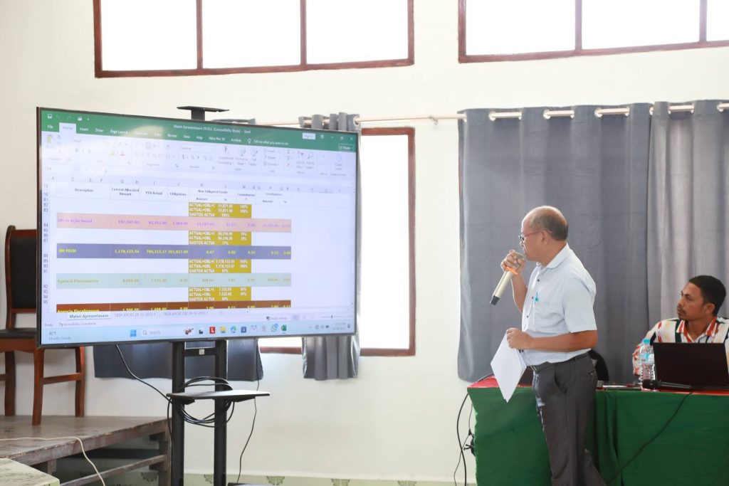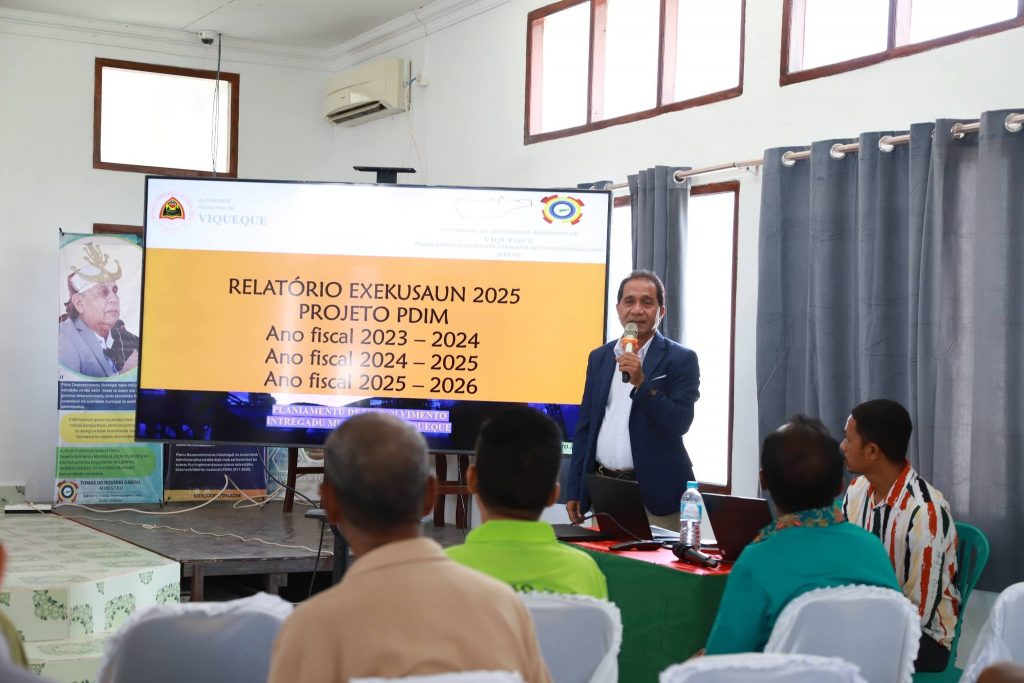 Aprezenta husi Diretór Ajénsia Planeamentu, aprezenta mós relatóriu espesialidade kona-ba ezekusaun projetu PDIM ho Programa Infraesturtura husi Diretór PDIM no representante Diretór PNDS. Inklui ezekusaun orsamentu tinan fiskál 2025 husi Diretór Servisu Munisipál Finansas.