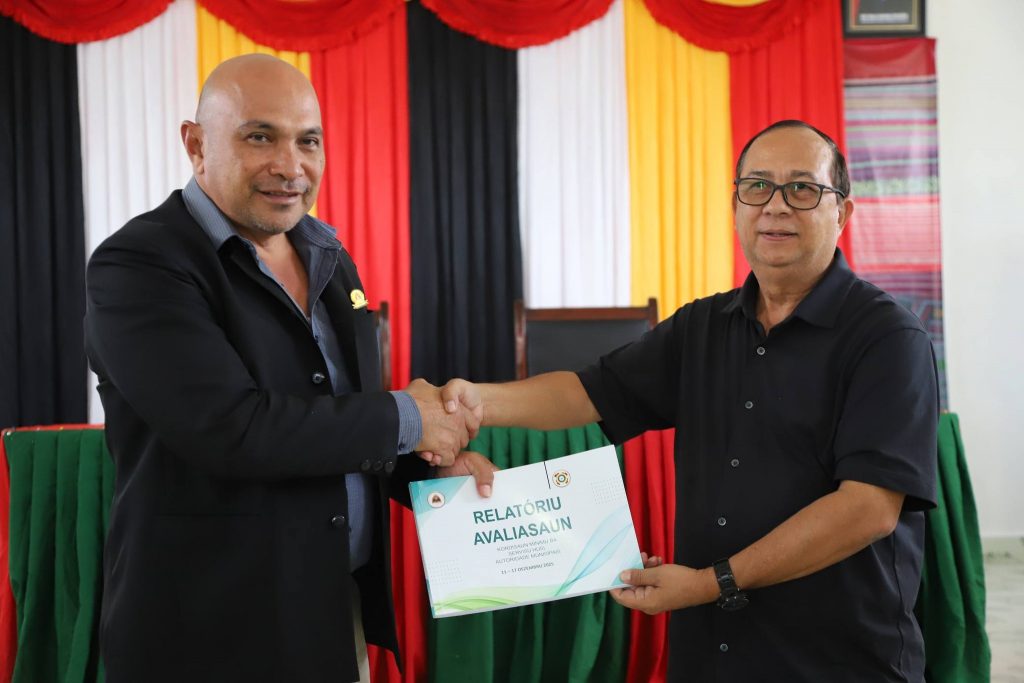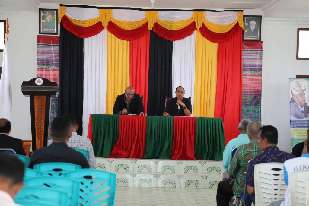 Viqueque, 29 Janeiru 2026, Kinta-feira ne’e, Exelénsia Prezidente Autoridade Munisípiu (PAM) Sr. Francisco C.S de G. Soares, hamutuk ho estrutura munisipál hala’o enkontru koordenasaun ho ekipa MAE, lidera husi Diretór Nasionál Apoiu Administrasaun Suku (DNAAS) Sr. Celestino Marques.