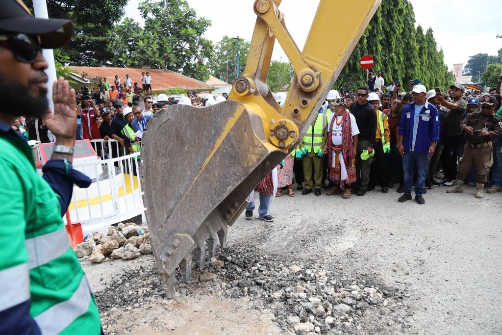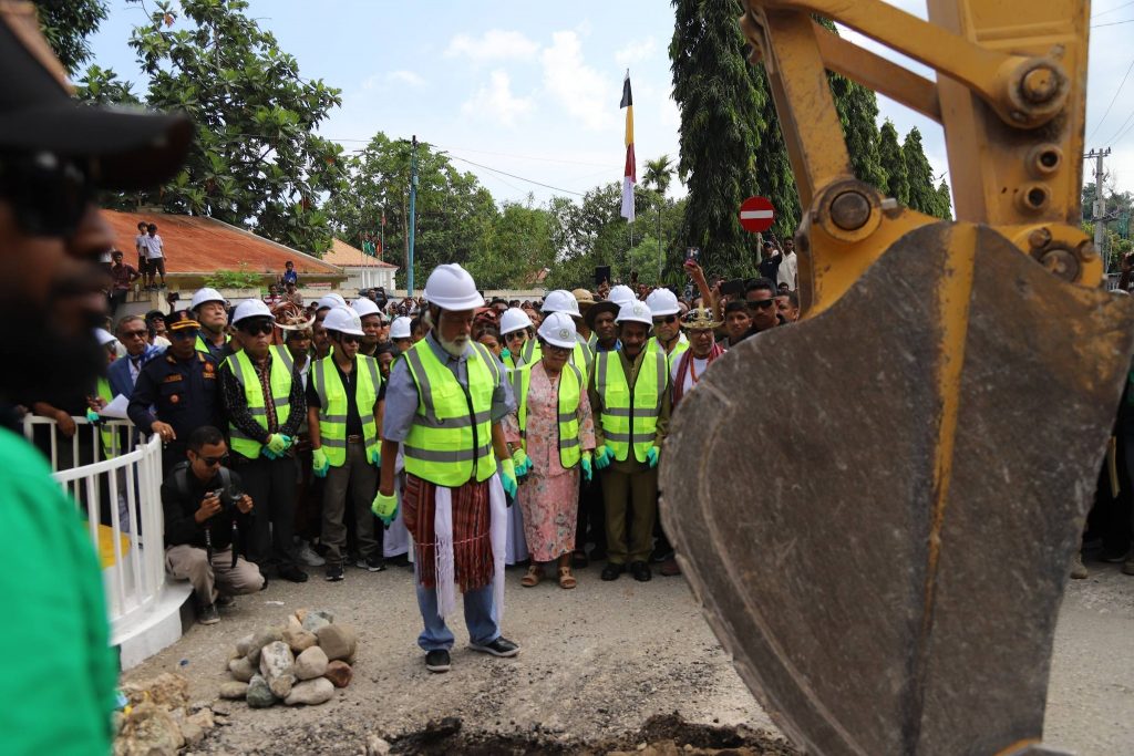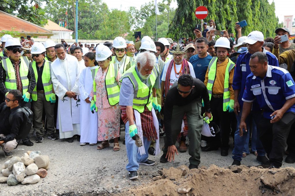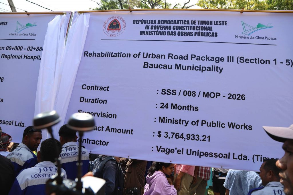Baucau, Sexta-Feira, 06 Fevereiru 2026, Exelentisímu Prezidente Autoridade Munisipál, Sr. Francisco C.S de Gonzaga Soares, partisipa iha serimónia lansamentu primeira pedra ba estrada urbana Baucau ne’ebé ofisialmente lansa husi Sua Exelénsia Primeiru Ministru, Sr. Kay Rala Xanana Gusmão.