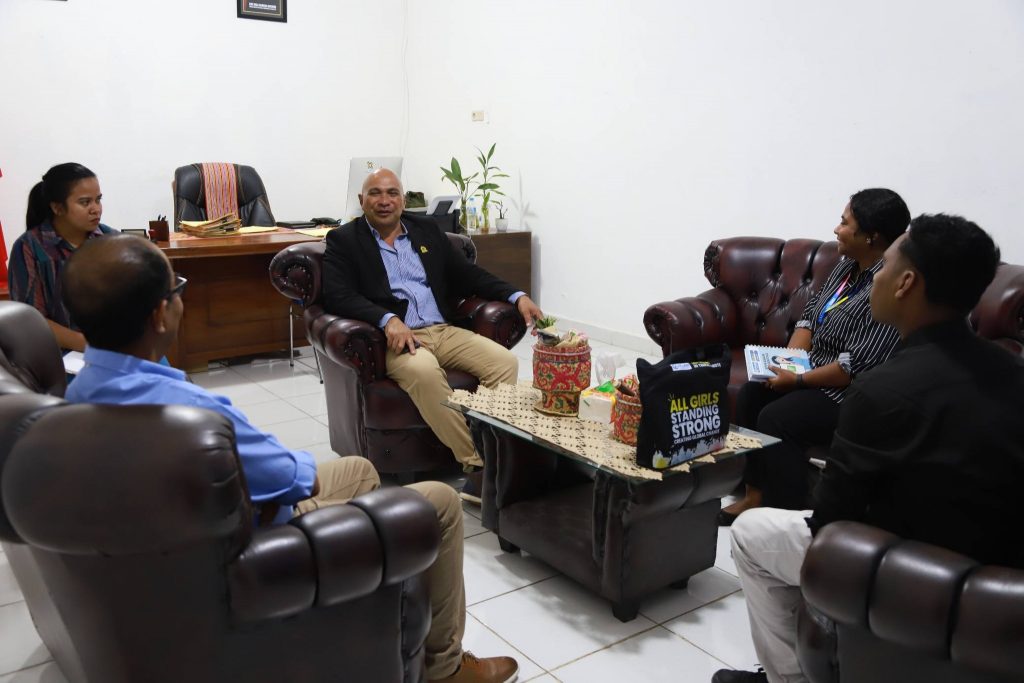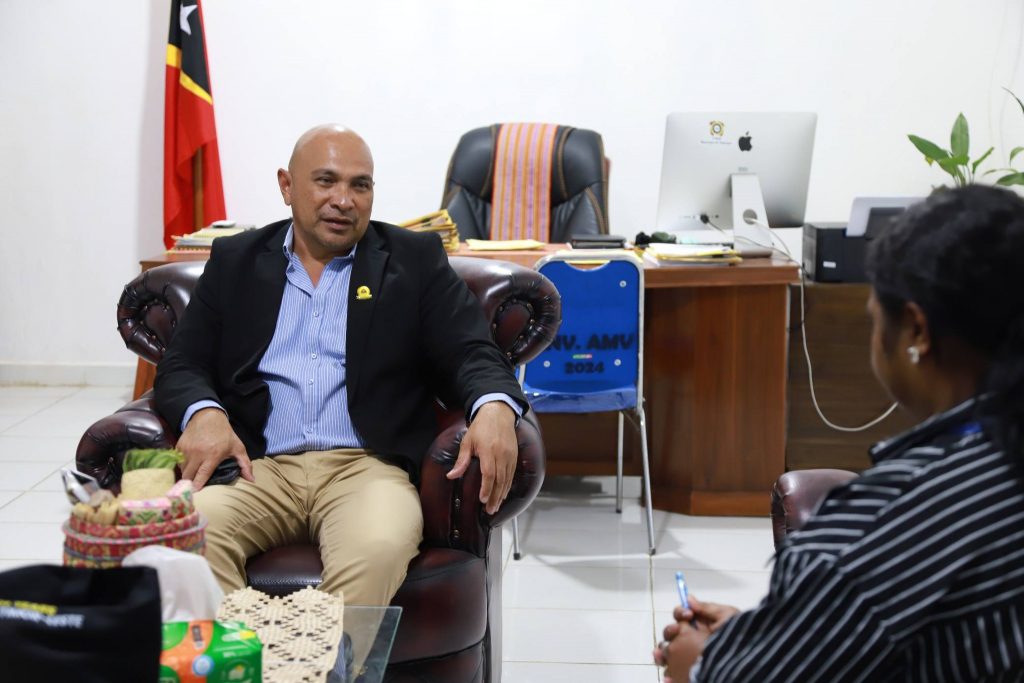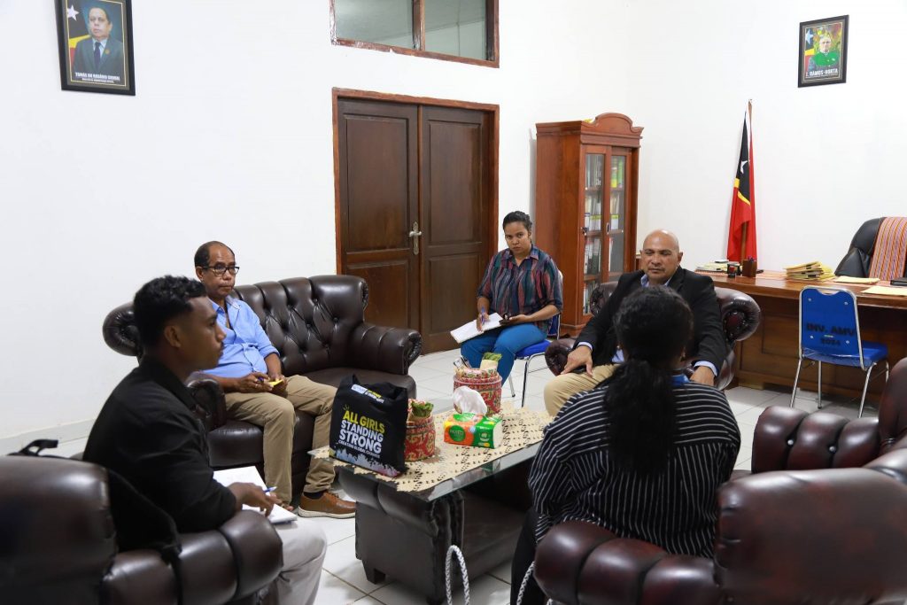 Viqueque, 28 Janeiru 2026, Sua Exelénsia Prezidente Autoridade Munisípiu, Sr. Francisco C.S de G. Soares, akompañia husi Asesór Planeamentu Dezenvolvimentu Lokál, simu audiénsia husi parseiru dezenvolvimentu PLAN Internasionál, lidera husi Livania Gomes nu’udar leader ba projetu CSO’S Strengthening.