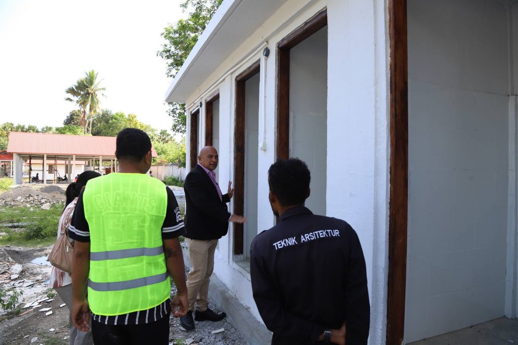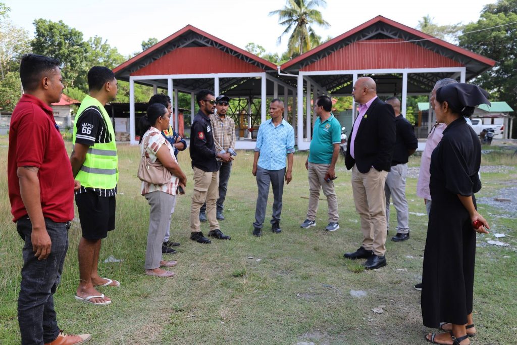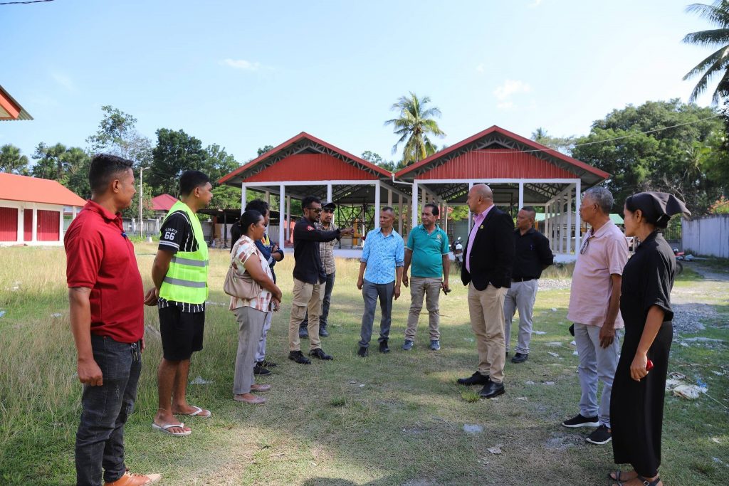 Viqueque, 05 Fevereiru 2026, Sua Exelénsia Prezidente Autoridade Munisípiu Sr. Francisco C.S de G. Soares, akompañia husi Autoridade Munisipál sira ba halo observasaun ba projetu rehabilitasaun merkadu Olobai, area Wesa, suku Caraubalo, kinta-feira ne’e.
