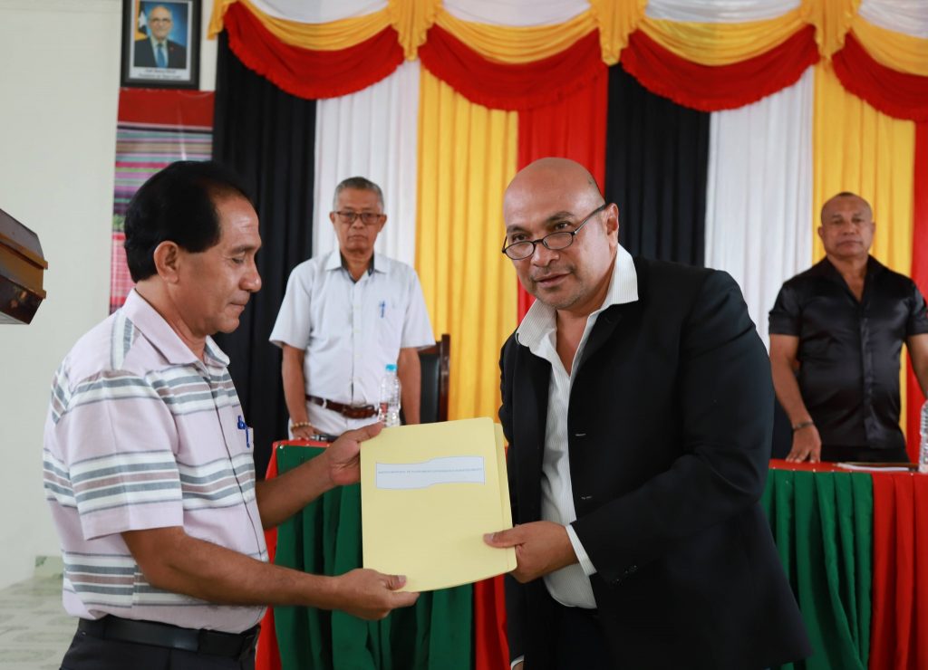 Viqueque, 16 Janeiru 2026, Sexta-feira ne’e, Sua Exelénsia Prezidente Autoridade Munisípiu Viqueque S. Francisco C. S. de G. Soares, ofisialmente distribui pakote fiskál Orsamentu Jerál Estadu (OJE) 2026, ba diresaun servisu munisipál inklui Gabinete PAM hamutuk ho Sekretariu na’in 3 no Postu Administrativu sira.