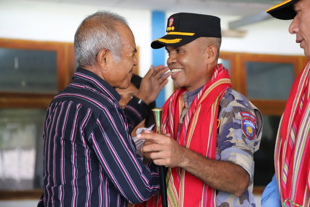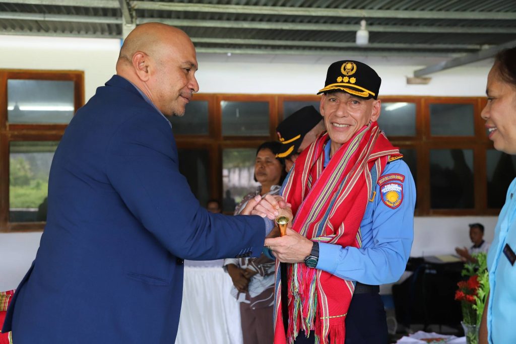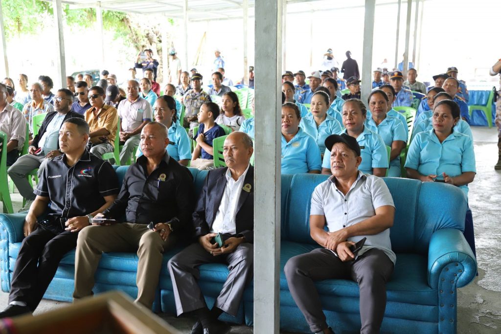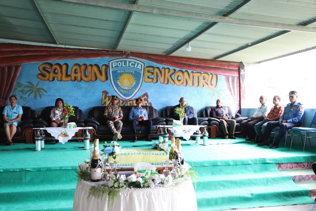 Sua Exelénsia Prezidente Autoridade Munisípiu Sr. Francisco C.S de G. Soares, partisipa serimónia despedida kona-ba termu entrega ba Komandante Polísia Nasionál Timor-Leste (PNTL) Munisípiu Viqueque sesante Superintendente Xefe António Rego Fernandes ba Komandante PNTL atuál Superintendente Xefe Euclides Belo, serimónia ne’e hala’o iha salaun Komandu PNTL Viqueque.